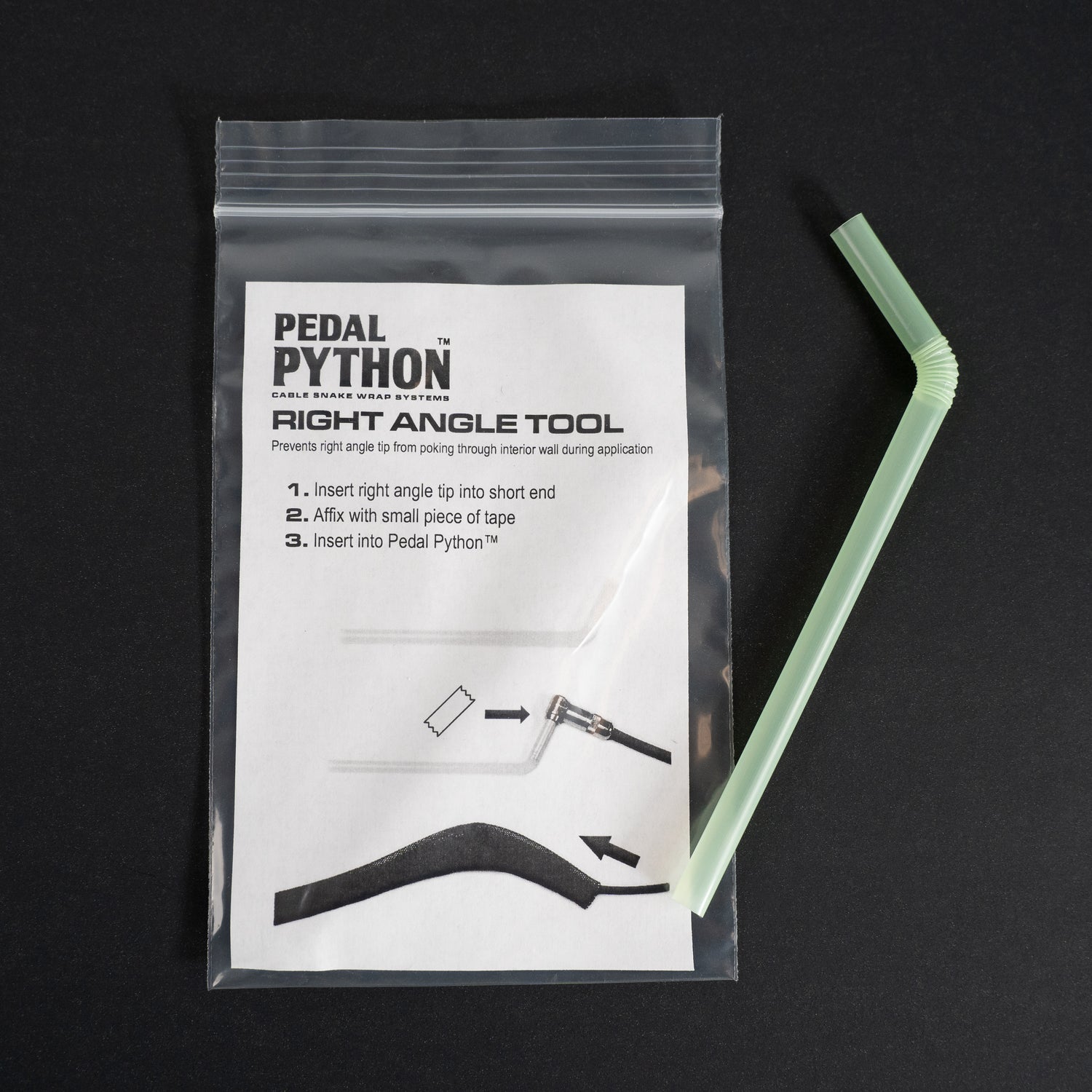 Our Right Angle Tool adapts your right angle plugs for use with the Pedal Python™ system. Customizable Cable Labels help you easily connect your cables fast! Add an extra-long 25 foot Power Supply Cable in case you’re far from an outlet, or grab Extra End Wraps to allow cable breakouts in your snake!