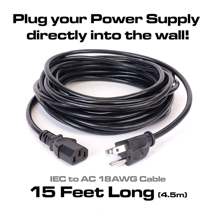 15 Foot Long AC Power Cord for Pedalboard Power Supplies & Multi-Effects Pedals