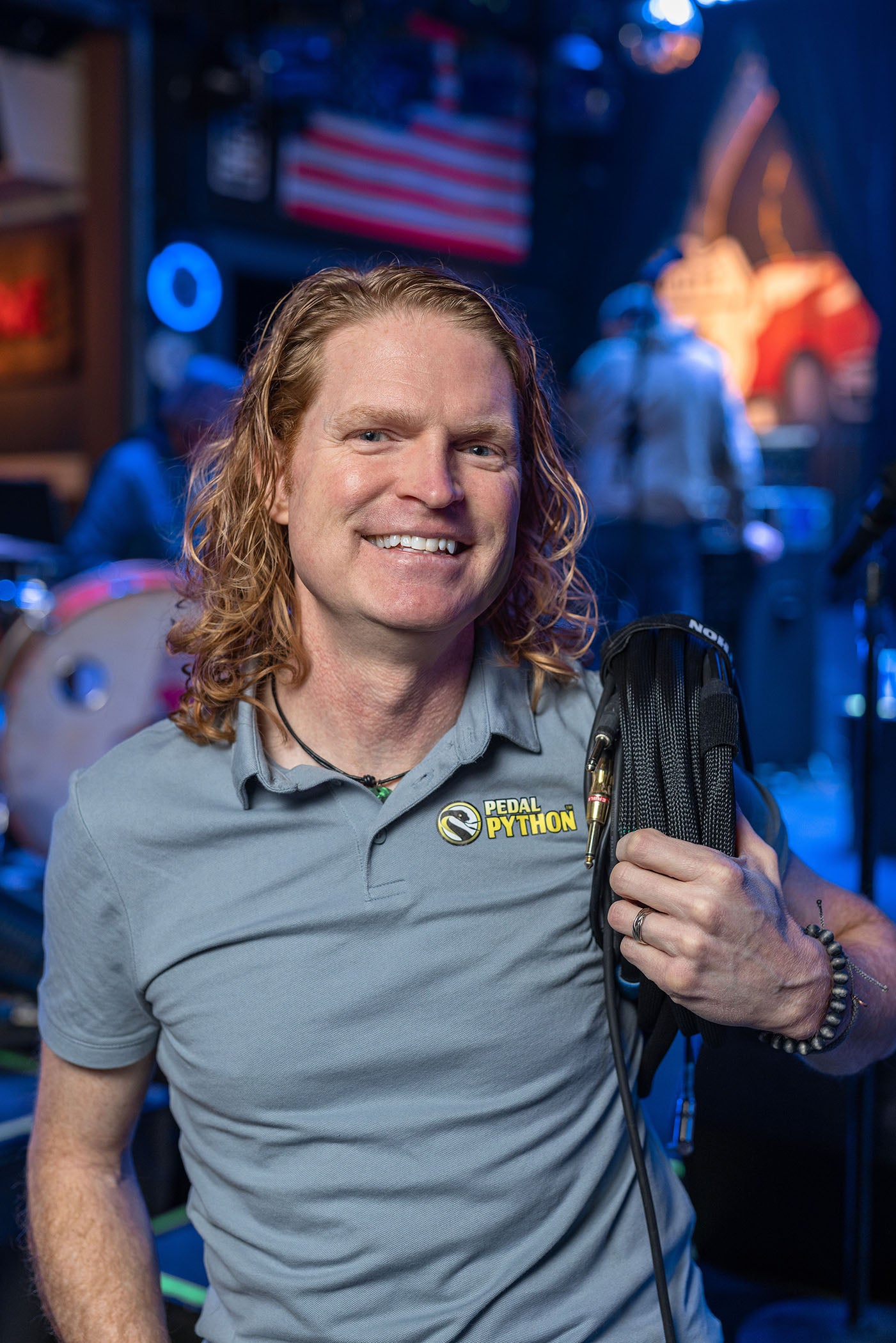 So, I sold one of my guitars, took the cash, bought a domain name and my first batch of materials. Out of my basement, and with the help of a talented videographer and a nice lady I knew with an embroidering machine, the first Pedal Python™ came to life. Now, many years later, thousands of my fellow musicians like you across the world have made their lives happier with Pedal Python™! Thanks for joining me on this journey!